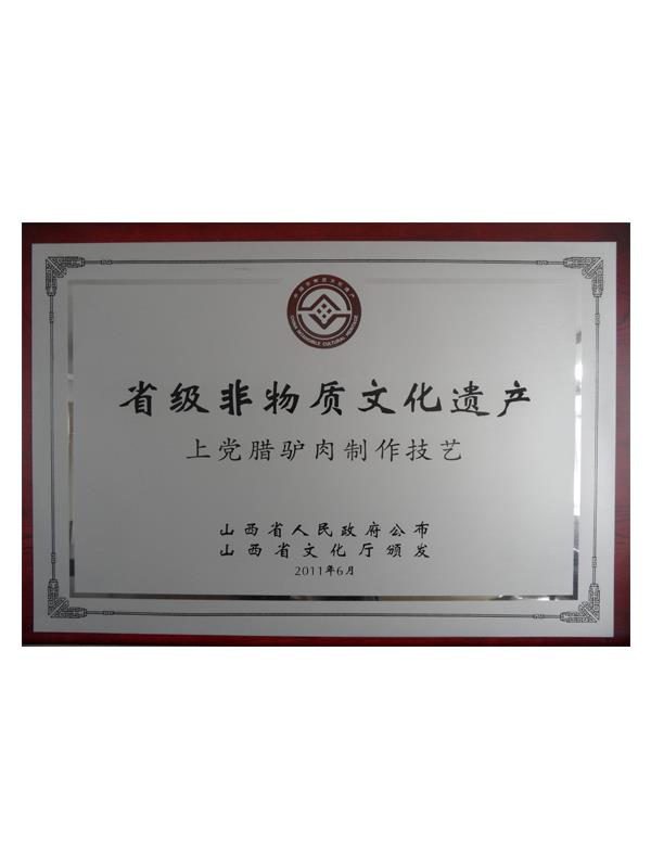 《本草綱目》第五十卷記載有:“驢肉味甘、無毒、解心煩、止風狂、能安心氣、補血益氣、治遠年勞損”的作用,尤其對失眠、健忘、眩暈、營養(yǎng)不良、貧血癥有獨特療效。上黨臘驢肉是山西長治市的漢族傳統(tǒng)名吃,其肉質肥而不膩、瘦而不柴、香味四溢、回味無窮。早在明代,臘驢肉就已馳名于上黨和晉南地區(qū),產(chǎn)品遠銷北京、天津、南京等南北名城。臘驢肉與當?shù)氐臎龇?、酥火燒被稱為潞安府(長治古稱潞安府)三寶。